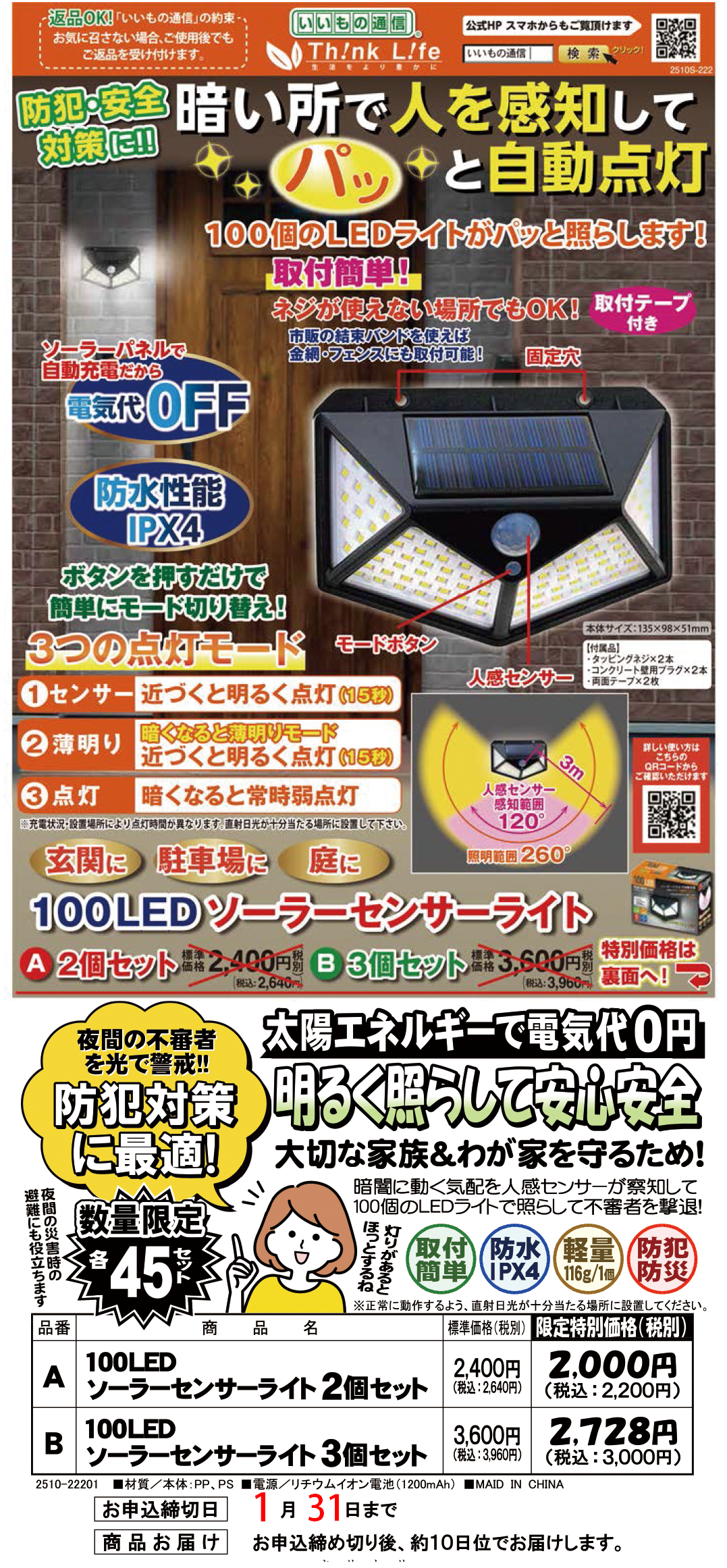 ■ソーラーセンサーライト2個セット